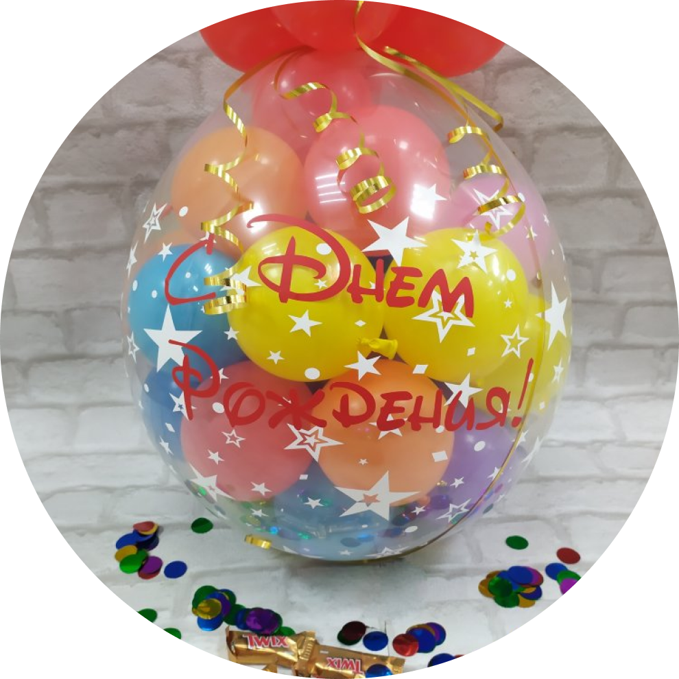 ВЗРЫВ ШАРА-СЮРПРИЗА d=50см — вау-эффект и сотни серебристых конфетти, а также сладости внутри.